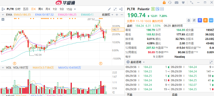 华盛资讯11月10日讯,美股早盘全线大涨,AI应用股集体走高,Palantir涨超7%,AppLo...[查看全文]