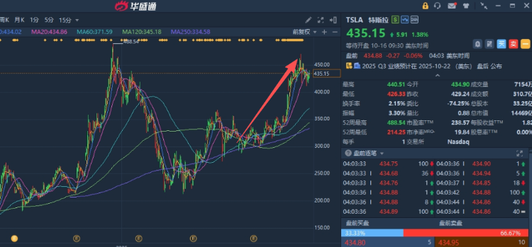 [db:图片]华盛资讯10月16日讯,特斯拉将于10月22日盘后公布2025年第三季度财报;据彭博分析师预期,特斯拉Q3营收为261.6亿美元,同比增长4%;调整后净利润18.9亿美元,同比减少24%。据TipRank统计,回顾特斯拉过去8个财季表现,仅有2个季度每股收益超预期,业绩公布后的股价平均变动为±10.52%,最大涨幅为+21.9%,最大跌幅为-12.3%;财报公布后首日股价上涨概率为50%。特斯拉股价Q3狂涨40%!马斯克带头抄底自家股票回顾三季度,特斯拉股价在多重利好刺激下,Q3累计涨幅达到惊人的40%,股价一度逼近历史新高,较年内低估反弹幅度超过100%。