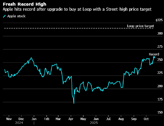 [db:图片]苹果公司股价在周一创下2025年新高,此前Loop Capital将其评级从“持有”上调至“买入”,成为最新一家看好iPhone需求趋势的投行。 苹果股价当日一度上涨3.1%,至260.20美元,突破自去年12月以来的历史高点。今年多数时间,苹果在标普500成分股中表现一直低迷,4月时跌幅一度达到31%。但自那以来,股价已累计上涨超过50%,并在9月下旬回到去年年末收盘位之上。 迹象显示消费者对新一代iPhone系列需求强于预期,市场对于换机周期启动预期升温。根据Counterpoint Research在周末发布的分析,iPhone 17系列在上市后头10天的销量相比iPhone 16同期增长了14%。 Loop分析师Ananda Baruah在上调评级的报告中写道,“我们站在期待已久的苹果设备更新周期的起点,新设计周期正在刺激换机需求”。他还将目标价上调至华尔街预期的最高水平315美元,意味着较上周五收盘价仍有约25%的上涨空间。