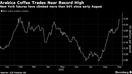 咖啡期货接近纪录高位 投机者押注巴西作物供应