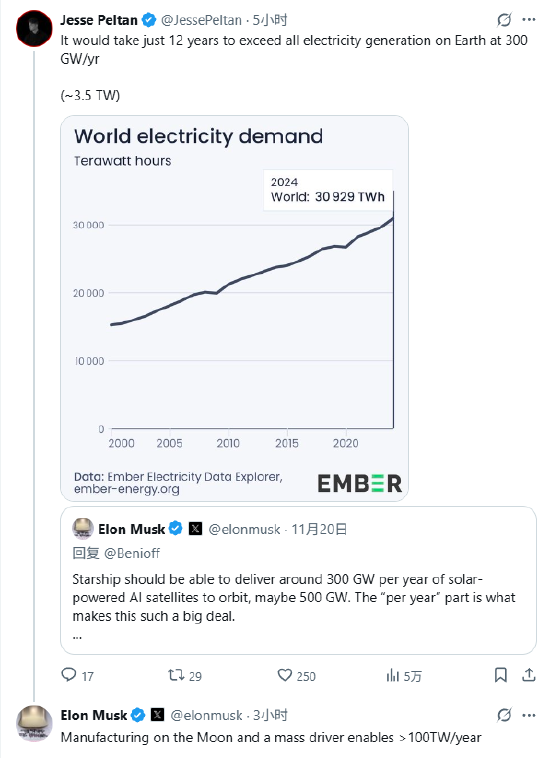 月球制造+质量投射器,马斯克瞄准每年100太瓦太