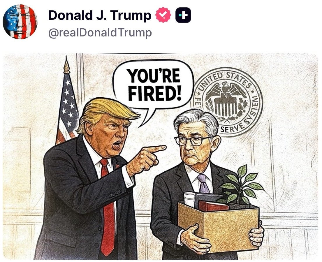 特朗普发布描绘自己解雇美联储主席鲍威尔的卡