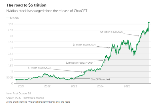 创造历史!英伟达成为首个市值突破5万亿美元的