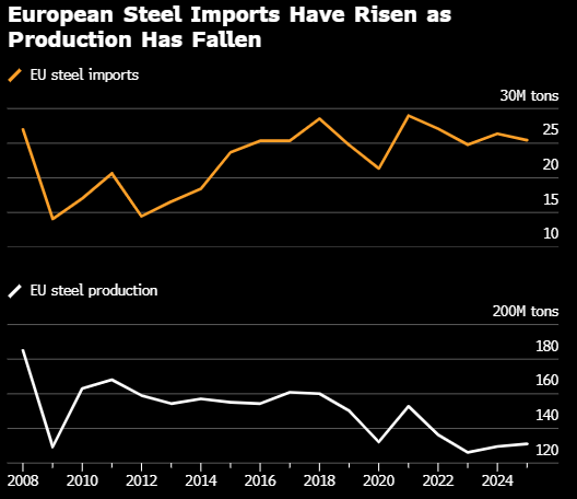 欧盟拟提议将钢铁进口关税税率提高一倍至50%